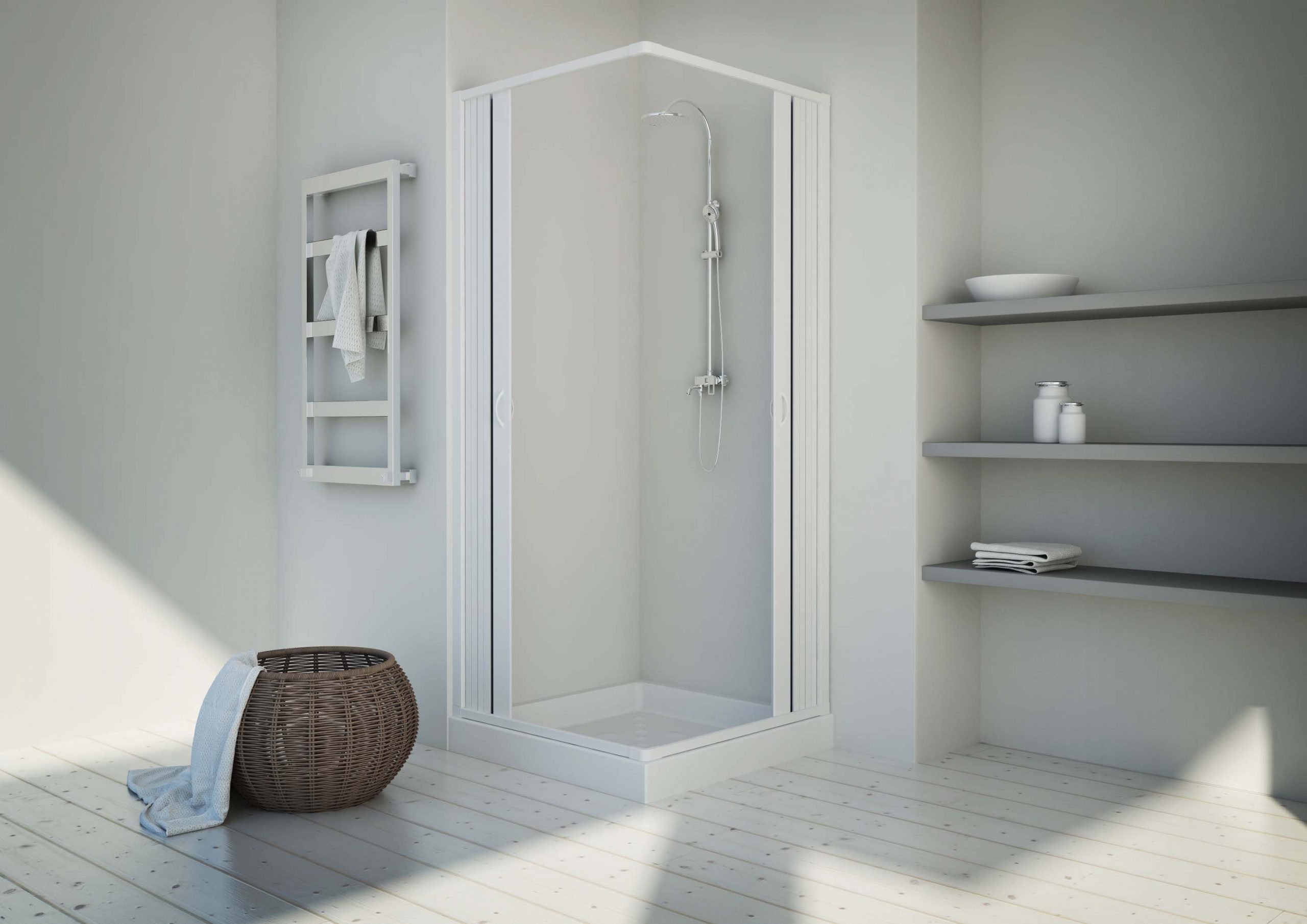 Corner shower cubicle PVC + glass (T. / A. ) series KAPPA colour WHITE PASTEL