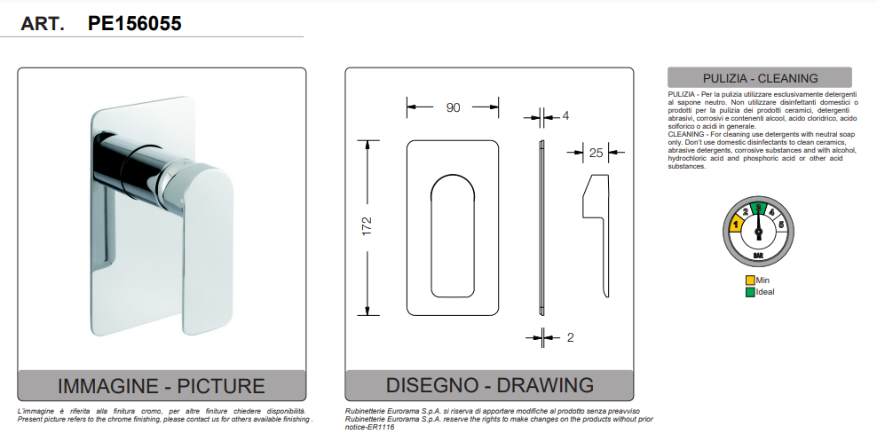 The Eurorama collections for your bathroom, a perfect symbiosis of furniture and design. The built-in shower mixer (including inner part set) by Eurorama Mon series is available in the finishes Chrome, Matt Black, Matt White, Brushed Nickel, Black Brushed Nickel, Brushed Gold, Matt Brushed Copper, Matt Brushed Bronze.