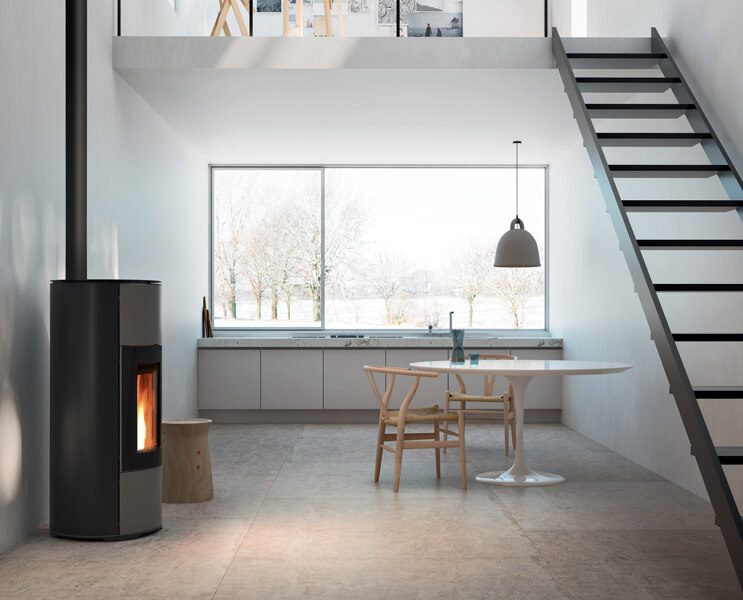 An airtight combustion chamber enables the pellet stove to draw oxygen exclusively from the outside, resulting in low consumption and perfect thermal comfort in modern homes. This is done without any risk of smoke emissions into the home.