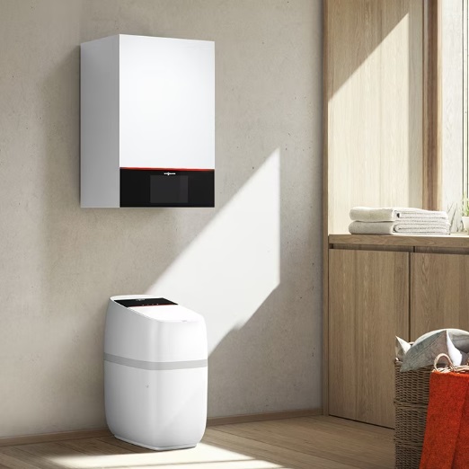 Vitoset Aqua water softening systems are available in five sizes with a flow rate of 15 to 28 liters per minute. The three sizes of the models can meet different needs in the intended installation location. For example, the VS34S unit fits aesthetically and functionally very well with a wall-mounted heat generator, such as the Vitocal 200-S air-to-water heat pump, for a family of up to 3 people.