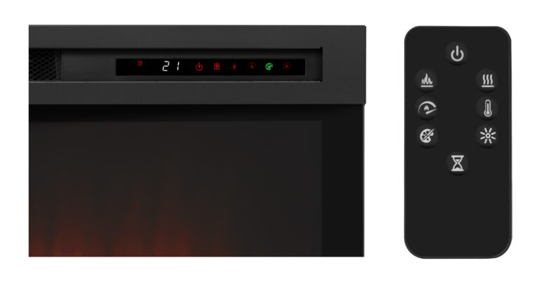 - Equipment: shutdown timer; temperature certification; flame settable with bluish or red hints, and with adjustable brightness; remote control as standard.