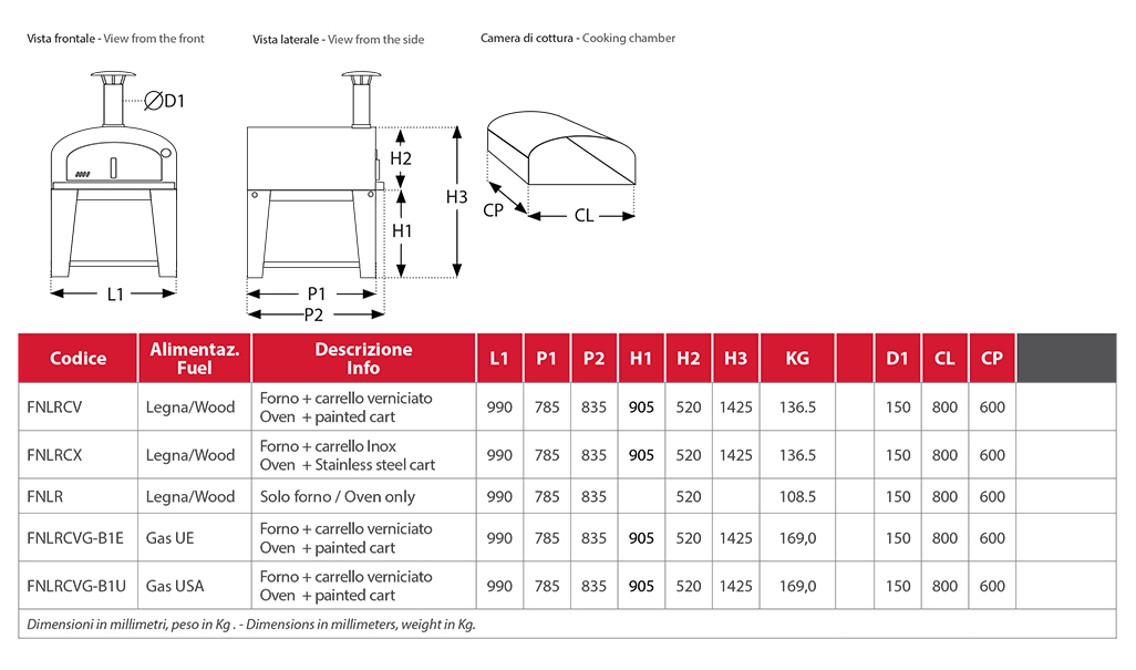 The outdoor wood-fired oven Nonna Luisa series by Rossofuoco is available in 2 colors: red or brown. Ready in 10 minutes and just 2 more to bake a great pizza. The differences between our models are the dimensions.