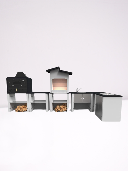 - Modulo Barbecue (Griglia: 58 x 40 cm + 58 x 20 cm; Prodotto: 96 cm x 60 cm x 167,2 cm; Peso netto struttura: 349 Kg)